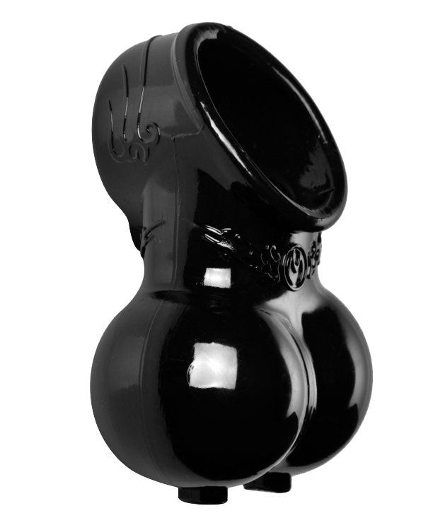 This devious scrotum sack creates a mild pressure sensation as well as a confining caress against the skin of the wearer. Simply fit the penis through the top ring and slip the bottom pouch over the scrotum. The Chamber gives just enough to fit over the wearer, while remaining firm enough to keep things interesting. The top ring helps retain blood flow for an enhanced erection. Is it reward? It is your domain, you decide.